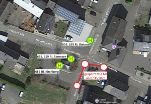 Ab Dienstag dem 10.06.2025 wir die Ortsdurchfahrt in Bengel voll gesperrt. Aus diesem Grund können die Haltestellen Bengel Birkenweg und Bengel Kirche der Linie 355 nicht angefahren werden. Damit die Ortschaft weiterhin angefahren werden kann wird eine Ersatzhaltestelle im Industriegebiet (Kreuzungsbereich Zur Schleif/Eifelstraße) eingerichtet.